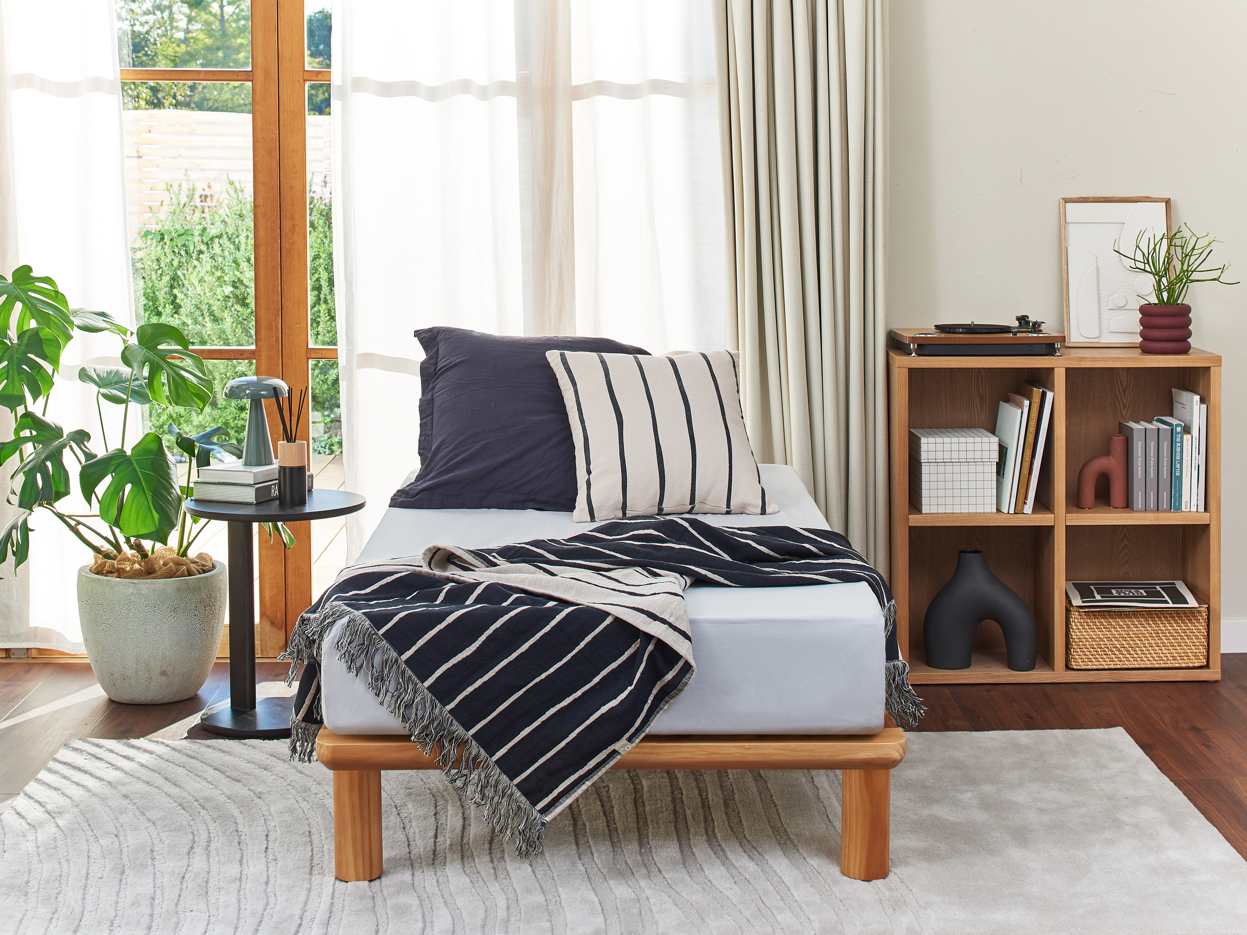 普段の使用でも、極力湿気を含ませないようにするには、直置きよりも、風通しのよいベッドフレームの上にマットレスを常備することが最適と言えます。